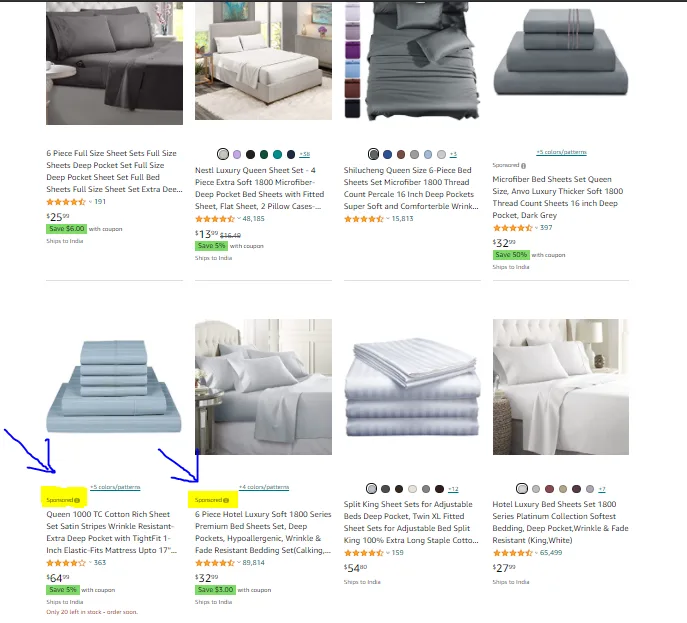 1. Top of the Search: This is the most competitive ad placement and also the best converting. When you bid for this placement, it appears in the first row of the Amazon SERP.