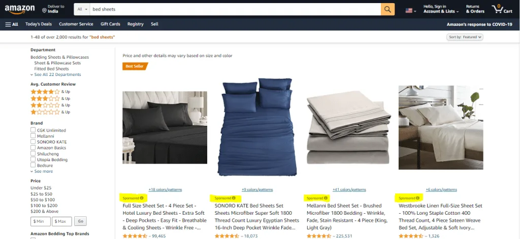 Sponsored Products Ads –  Sponsored Product ads are keyword-driven ads that allow advertisers to promote their products within Amazon’s advertising infrastructure. These ads usually appear in the search results and on product detail pages. Within search results, the ad can be in between the list of items, at the top as a header, or as a footer to the page. On the product detail pages, this can be used to steal competitor’s customers through carousels and recommended product sections.